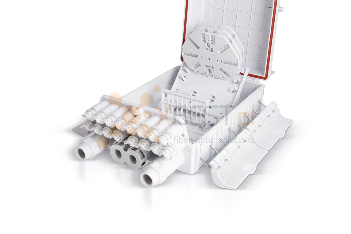 Komplet mufy Tracom FTTX MDU G16 (2xPG + uncut port) zawiera: