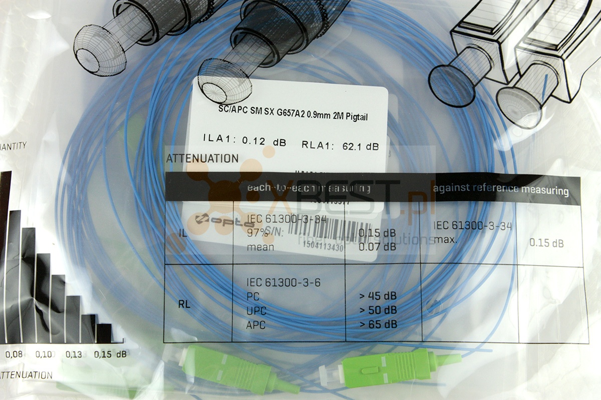 Pigtail ConnLink GOLD SC/APC (8˚), SM G657A2, 2M, Semi Strip
